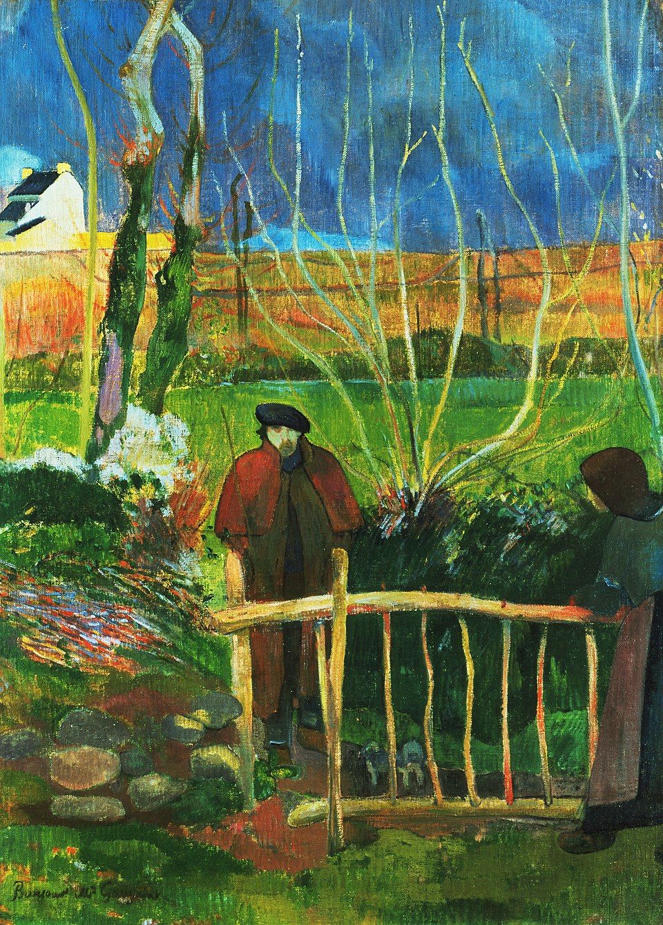 - L'autoportrait Bonjour Monsieur Gauguin, où il se représente seul, étranger dans cet environnement rural, symbole de réalisme. En détournant le tableau de Courbet, Gauguin s'exonère du réalisme, le réel devient toile de fond, le subjectif tient le dessus.